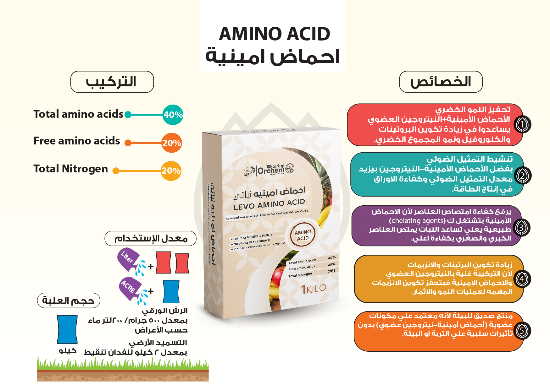 الأحماض الأمينية الحرة تعمل كعامل مُخلب يساعد على زيادة جاهزية العناصر ورفع معدل الامتصاص.